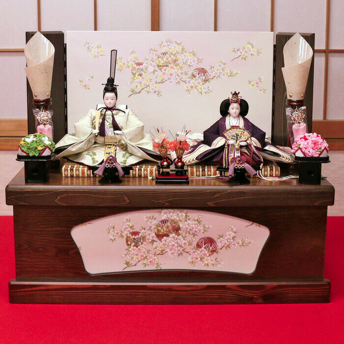 商品名なつみ雛タイプ収納タイプ価格220,000円(税込み)サイズ間口80cm × 奥行き41cm × 高さ67cm付属品被布着、オルゴール、毛せん、はたきお雛様の台の中に入れて収納して頂けます。