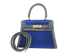 【中古】【美品】HERMES エルメス プリーツミニケリー 外縫い ヴォーべロア(ドブリス)×サテンシルク ブルー×グレー ゴールド金具 C刻印□ ヴィンテージ ハンドバッグ ショルダーバッグ 2WAYバッグ