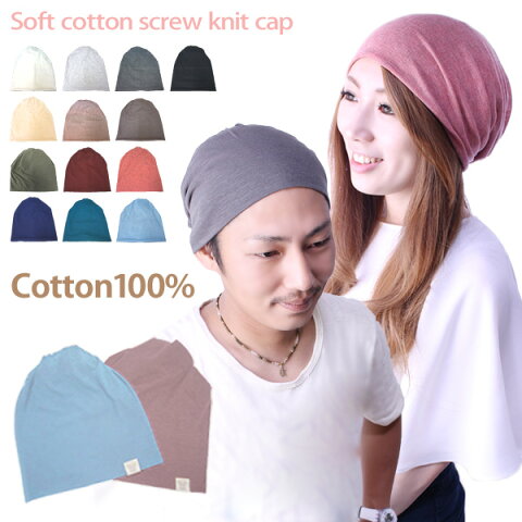 医療用帽子 おしゃれ ナイトキャップ 就寝用 散歩 外出用 メンズ レディース ニット帽 抗がん剤 脱毛 キャップ 綿100% コットン 春 夏 オールシーズン 軽い さらさら 持ち運び かさばらない 黒 ブラック 2way ターバン風 【ソフトコットンスクリューニットキャップ】