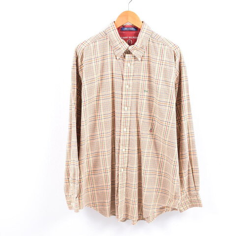 90年代 トミーヒルフィガー TOMMY HILFIGER チェック柄 長袖 ボタンダウン ライトネルシャツ メンズL /eaa000093 【中古】 【200118】