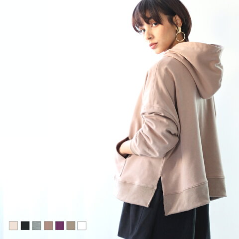 【21日15時から!半額クーポン利用で1999円】送料無料 サイドスリット ワイド パーカー 裏毛 シンプル 無地 重ね着 大人カジュアル おしゃれ フード ブラック ホワイト cl5001 Tシャツ カットソー おしゃれ クラシカルエルフ 秋 冬
