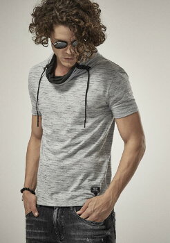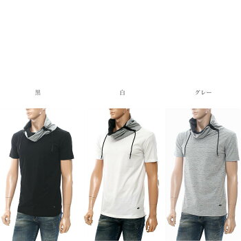 Tシャツ メンズ 半袖 黒/白/グレー コード付き ストレッチ オフタートルネック 父の日 プレゼント