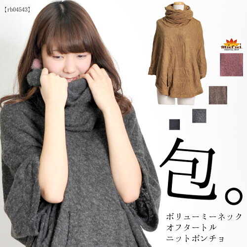 お洒落で可愛い見ぃつけた!ボリューミーネックオフタートルニットポンチョ カジュアル ナチュラル デイリー ファッション ベーシック アウター 【ドでか】在庫一掃